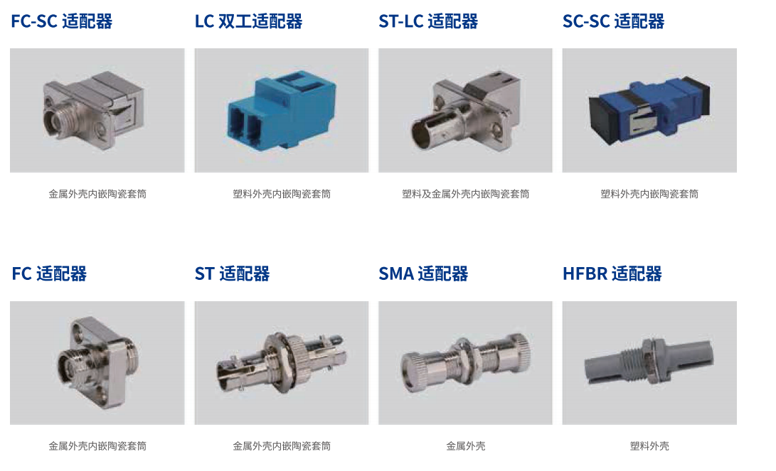 長飛公司可提供全系列工控適配器,適配器兩端可插入不同接口類型的光纖連接器, 實現FC、SC、ST、LC、E2000 等不同接口間的轉換,性能良好, 穩定可靠,滿足各種應用需求。