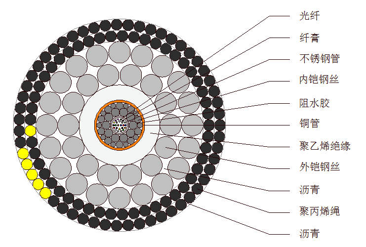 該光纜適用于在敷設(shè)、埋設(shè)、回收、運(yùn)行時(shí)具有雙層鎧裝防護(hù)的淺海中特定區(qū)域 |